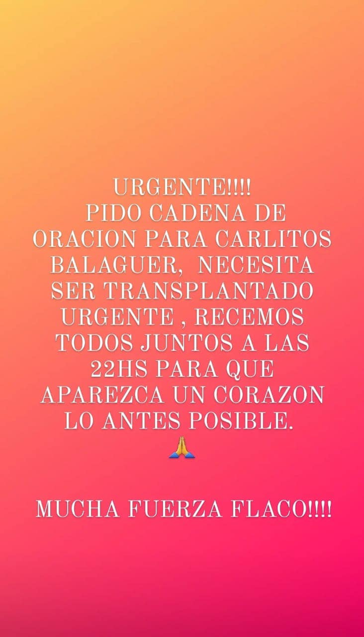 Este miércoles, los usuarios sanjuaninos de redes sociales inundaron sus cuentas con una publicación en la que solicitan oraciones por la salud de Carlos Balaguer, un empleado judicial que es hijo del excortista que se llamab de igual manera y falleció en el 2019.