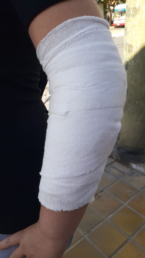 Al llegar a su casa, Nadia sintió dolores muy intensos en el brazo. Al día siguiente decidió volver al hospital. Pero, ante su consulta dijeron que no podían atenderla porque no era accidente reciente. Entonces, ella le pidió a su marido que la llevara a la Clínica el Mercedario. “No tengo obra social, pero no daba más del dolor y tenía miedo. En la consulta confirmaron que no tenía fisura ni quebradura, pero me dijeron que la herida había sido muy profunda y me inmovilizaron el brazo, además me dieron calmantes y eso me hizo bien”.