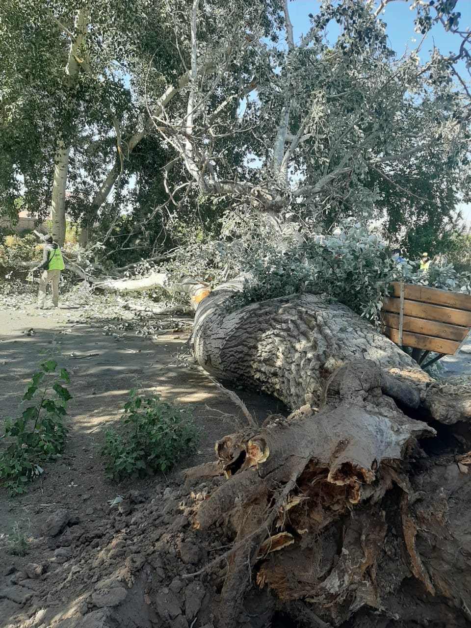 Personal del Municipio de Rivadavia se acercó al lugar para cortarlo, reducirlo y poder despejar la calzada, que quedó totalmente interrumpida. Se toparon con un inconveniente: había un nido de abejas que estaban muy inquietas y eso dificultó la tarea.