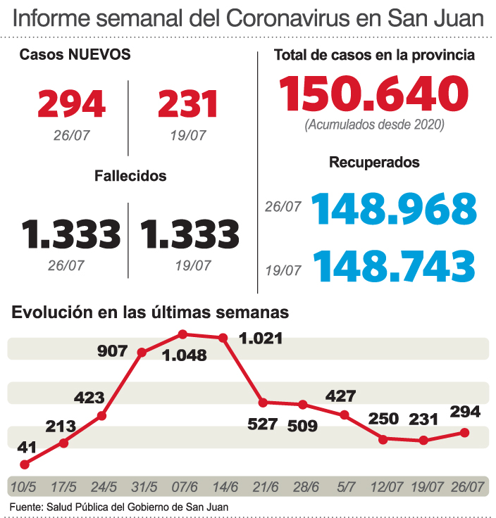 Los números de coronavirus registrados en la provincia correspondientes a la semana: