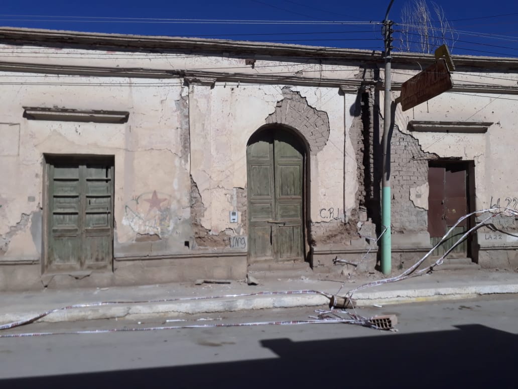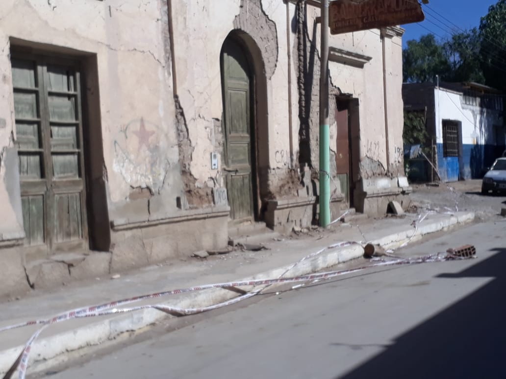 Un curioso procedimiento sucedió en la mañana de este jueves, que necesitó la actuación de personal de Defensa Civil y Bomberos. Una vieja casona ubicada en Jáchal corre serios riesgos y su derrumbe parece ser inminente. Así lo estableció la denuncia que movilizó la inspección y posterior cercado de la edificación.