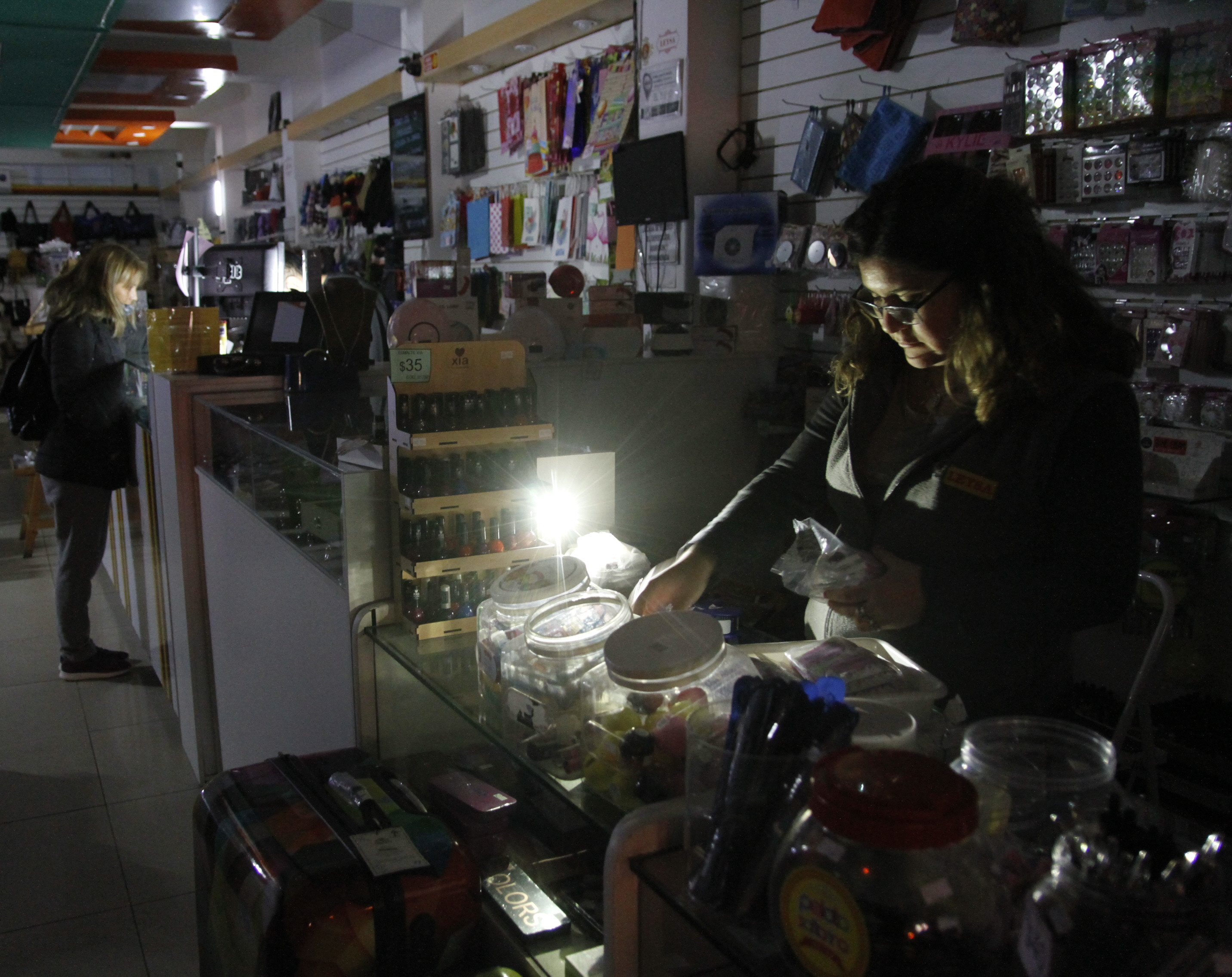 En el local de venta de bijouterie de calle General Acha pasando Santa Fe, las puertas permanecieron cerradas mientras el personal trabajaba en su interior bajo la luz de emergencia y con las pocas linternas que tenían a mano. Sólo se atendía a una persona a la vez por lo que una cliente tuvo que esperar varios minutos en la vereda a que Marcelo, encargado del local, terminara de cerrar la compra. Algo similar le ocurrió a Juancito, la tradicional peluquería de la Galería Estornell, que con una luz de emergencia dio sus últimas estocadas y tuvo que despachar a un segundo cliente por carecer de luz.