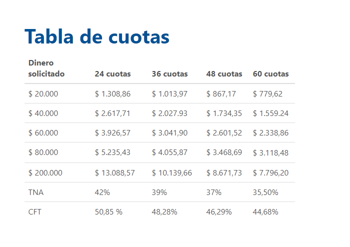 Costo Financiero Total: entre el 40% y el 50,8%.