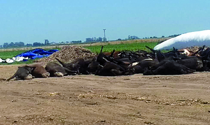 Aclaración: Ninguno de los animales se han utilizado para faena. Senasa comunicó que no es una enfermedad infectocontagiosa, hay un problema adentro del animal, que se murió por el calor porque no tenía el mecanismo para disipar tan alta temperatura. No hay virus.