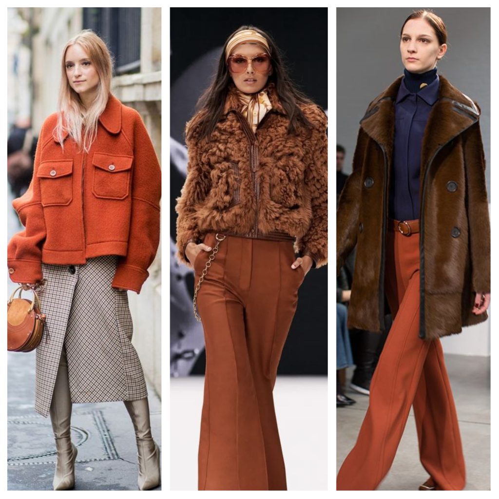 Los tonos naranja quemado tiene connotaciones de creatividad, sensualidad y abundancia, lo que probablemente explica por qué ha resultado ser un color tan popular entre los diseñadores. Es un tono apagado, genial si tienes miedo de la ropa de colores brillantes, ya que todavía tiene un gran impacto. El naranja ama los tonos de piel cálidos y se puede combinar con neutrales como crema, camello, bronce o gris. Si te sientes seguro, mezclarlo con azul marino o púrpura joya puede ser (súper) impactante, al igual que combinarlo al usarlo con sus tonos análogos en la rueda de colores, como amarillo, rosa y rojo. Prueba sudaderas con capucha y chaquetas para una versión moderna y lujosa de la ropa deportiva. Este tono terroso combina bien con materiales naturales como el lino o lana para un estilo bohemio de lujo.