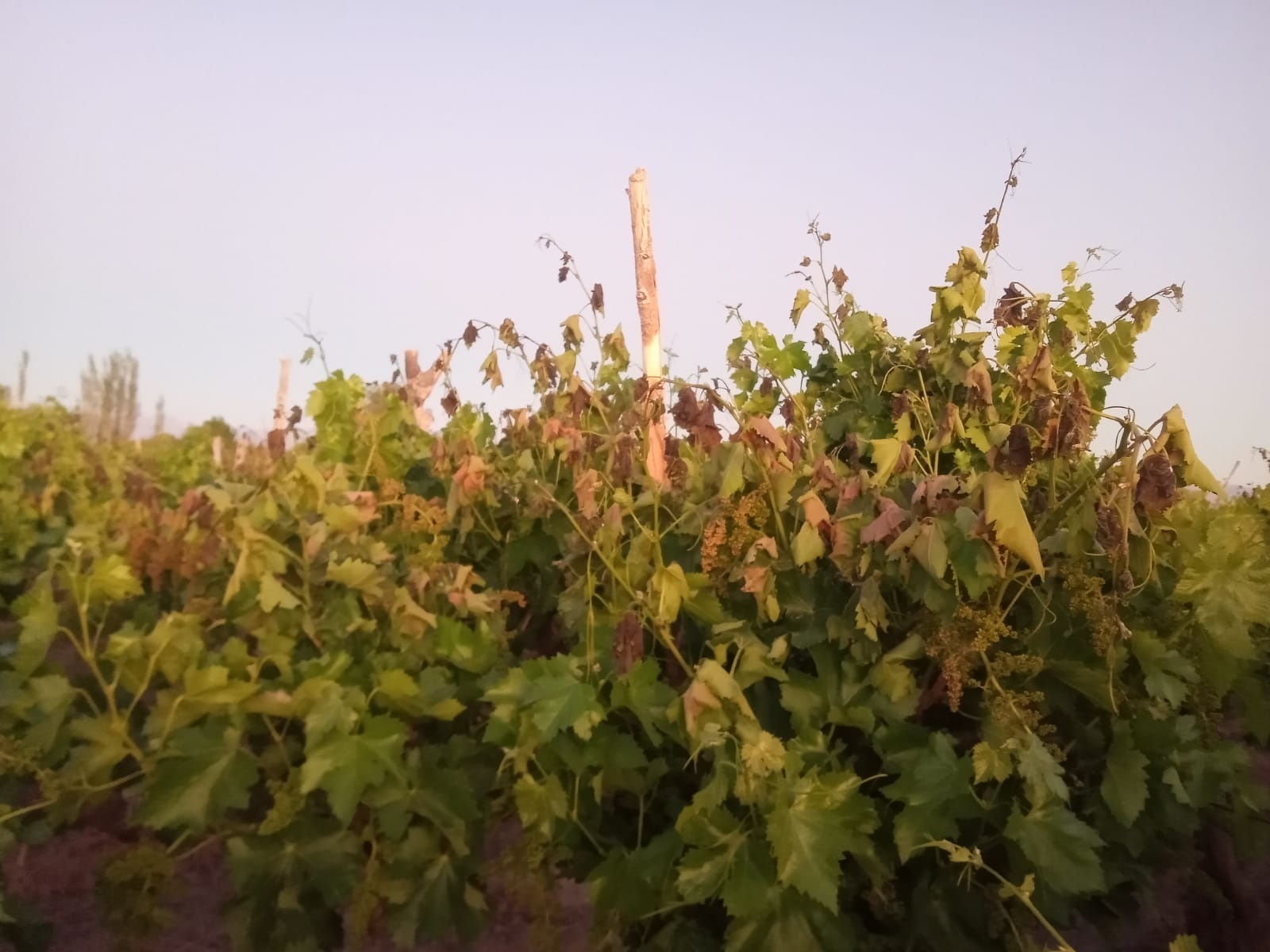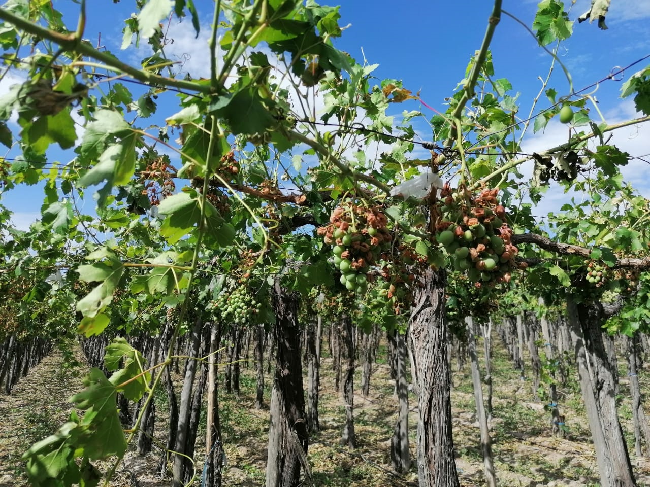 La situación puede ser peor ya que la temporada empezó con una helada tardía que, en San Juan, no fue devastadora, pero sí inusual. En muchos lugares hubo una incidencia del 50%, pero con una baja severidad. Esta helada quemó la punta de brotes tiernos y, en las variedades tardías, hubo daño en órganos florales generando un daño directo. En algunos casos, pudo existir un efecto adverso en tejidos y yemas que manifestaron un crecimiento errático en el resto de la temporada. Sin embargo, en este tipo de accidente climático, el daño nunca es mayor al 100%, por lo que si la planta reacciona positivamente, no tendría consecuencias negativas en la futura temporada.