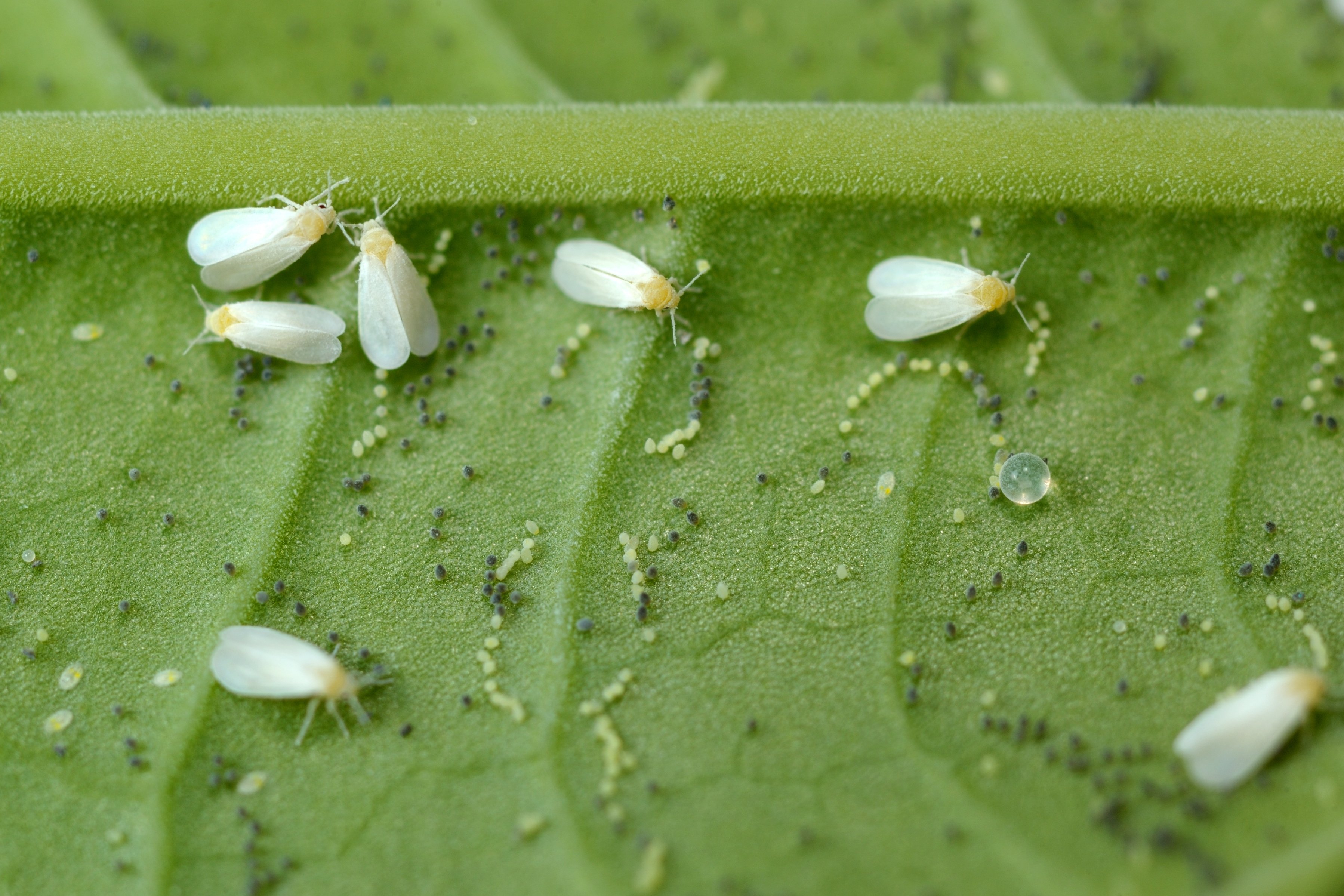 La plaga de mosca blanca es otra de las más habituales en cultivos de huerto y jardines. Su proliferación en estaciones calurosas como primavera y verano es muy difícil de controlar porque en su ciclo de vida de entre 10-30 días pueden llegar a reproducirse varias veces. Se alimentan de la salvia de las plantas y pueden detectarse síntomas como hojas atrofiadas, arrugadas, secas y amarillentas. La melaza que producen sobre las hojas pueden provocar la aparición de otro tipo de insectos o infecciones en la propia planta.