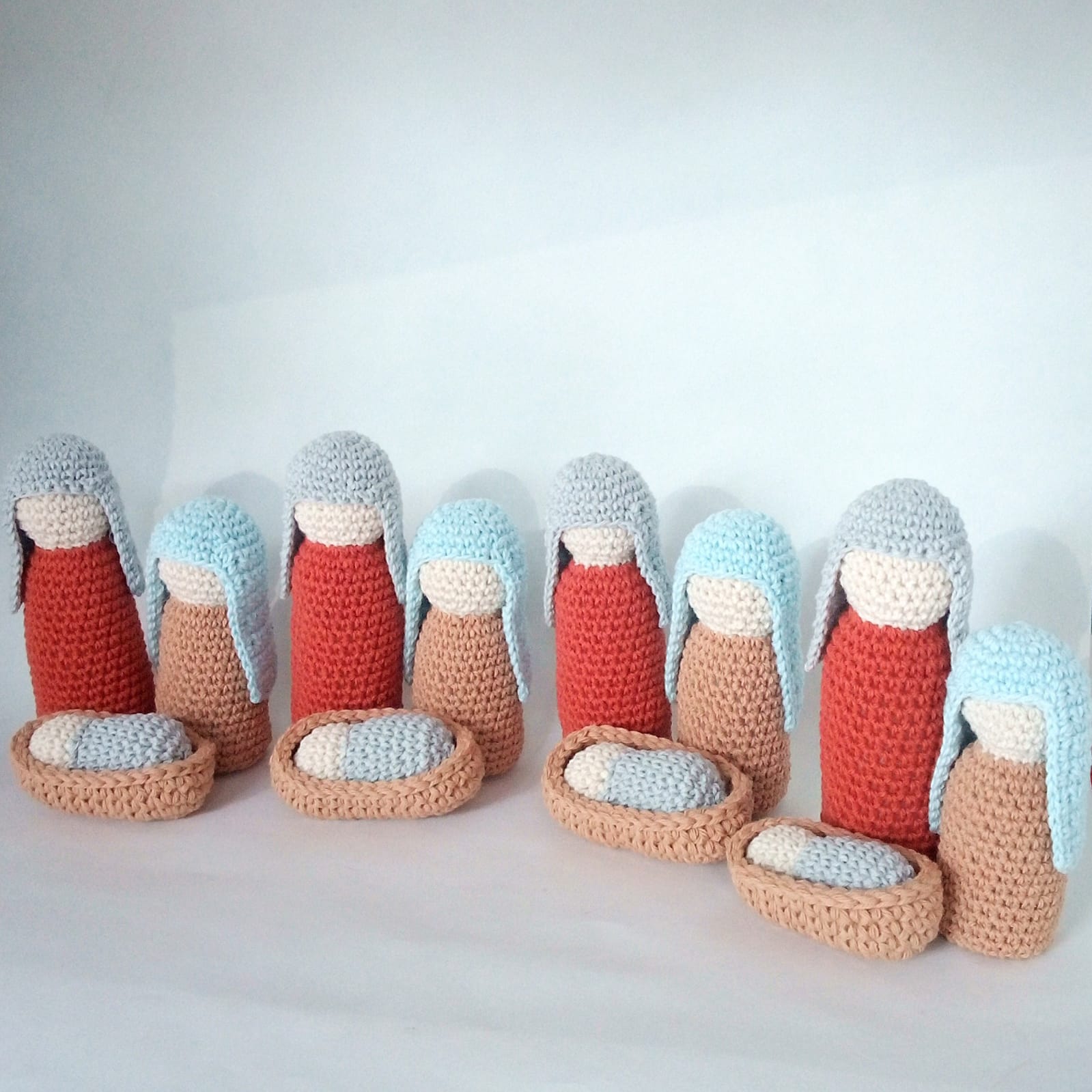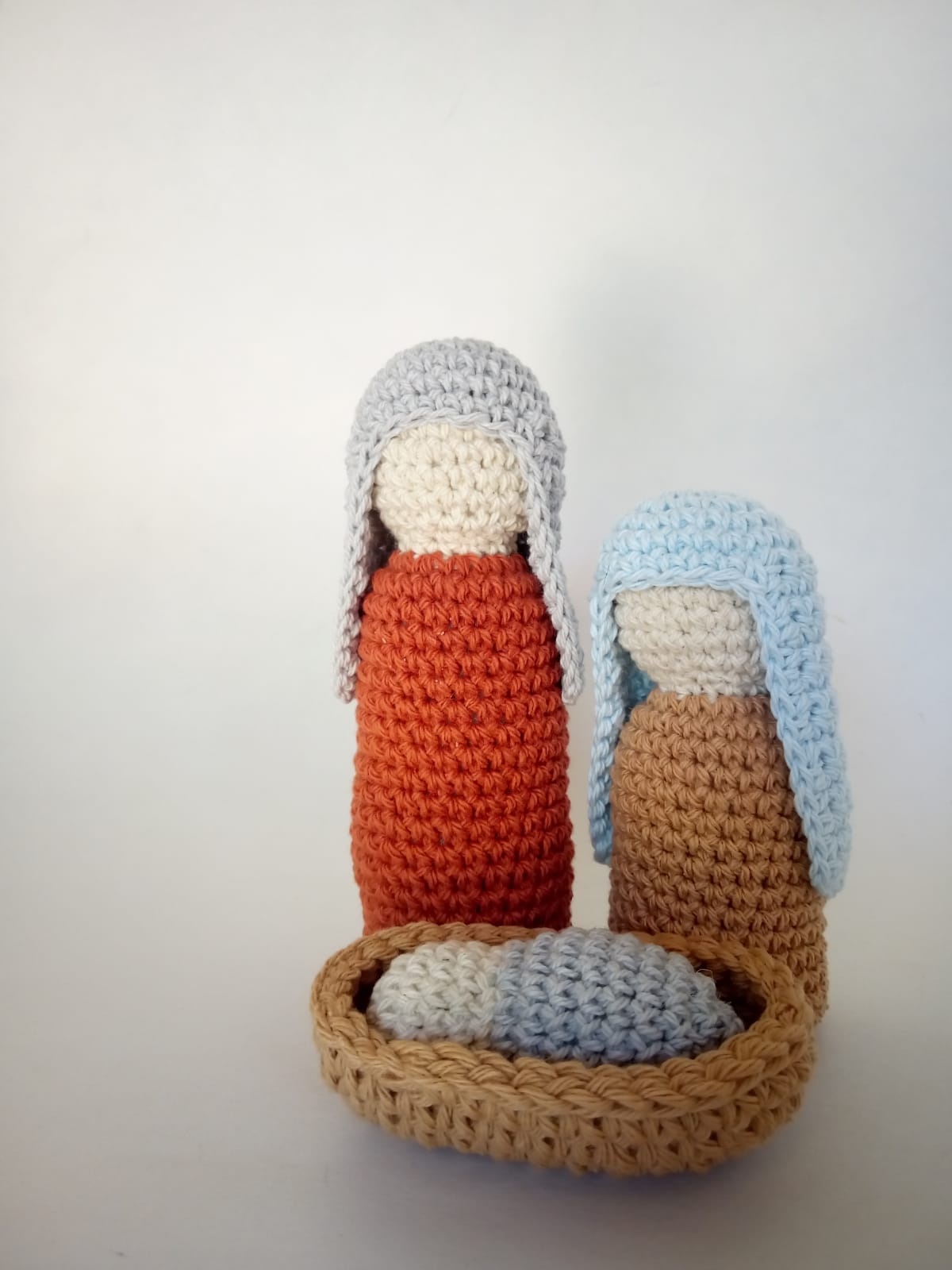 Noe Lezcano Olmedo, apelando a los conocimientos que viene poniendo en práctica desde hace más de 10 años en su Pia Pia el nombre de su emprendimiento de artesanías- armó para esta Navidad, un pesebre muy especial. Su pieza estrella, con las tres figuras principales de la celebración alrededor de una cuna, es tejida a crochet en base a un diseño simple, minimalista y con colores básicos.