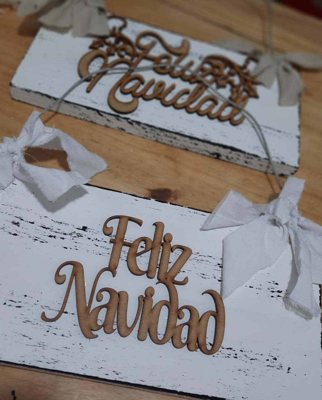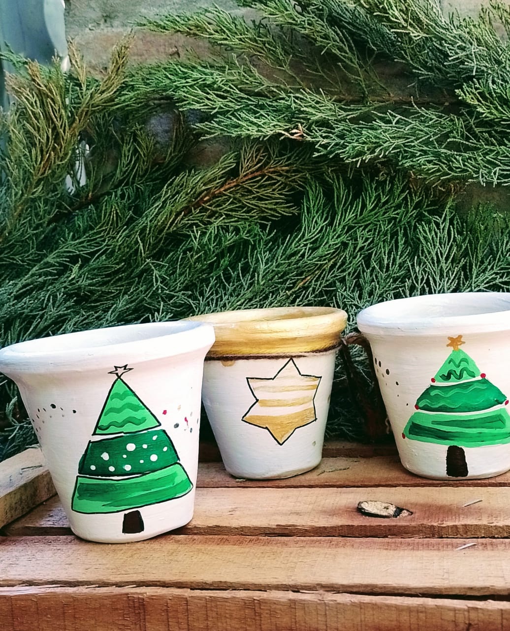 Los arbolitos con flores y las coronas no son la única tarea, ya que las artesanas preparan centros de mesa, adornos colgantes y Sagradas Familias, para aquellos hogares donde no hay mucho espacio para hacer el despliegue de los pesebres. También trabajan en madera, con stensil y sellos, materiales básicos para hacer cartelería y mensajes.