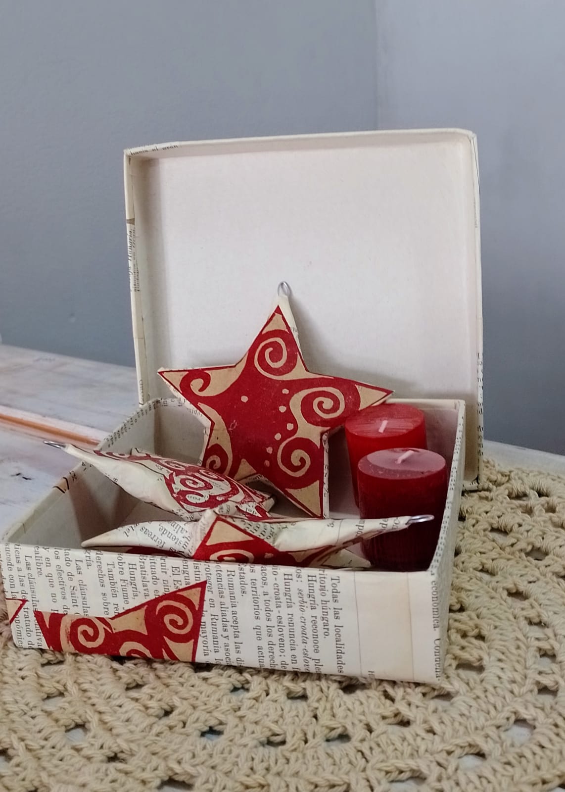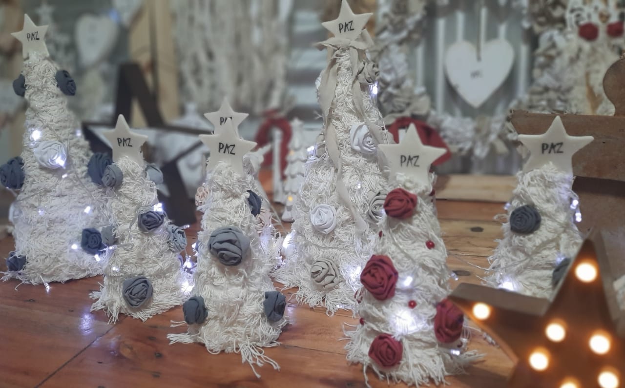 En este espacio de venta que reúne el trabajo artesanal también venden cajas de papel reciclado con estrellas ornamentales, velas, estrellas rústicas (de ramitas de árboles por ejemplo) con luces, entre otros objetos. Para ver el trabajo de las artesanas y todas las opciones, hay que seguirlas en su cuenta en Instagram @punto_ creativo2021.