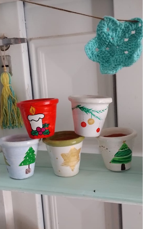 Por su parte, Mercedes quien trabaja de manera personal en su emprendimiento La Casa de Mecha Macetas Pintadas, que está en Zonda- aparte de los cacharros de barro, pinta campanas y teje atrapasueños.