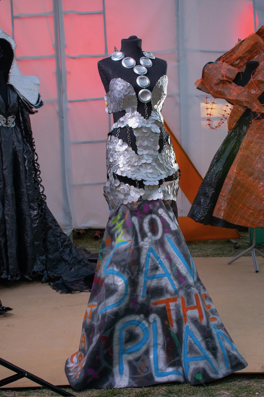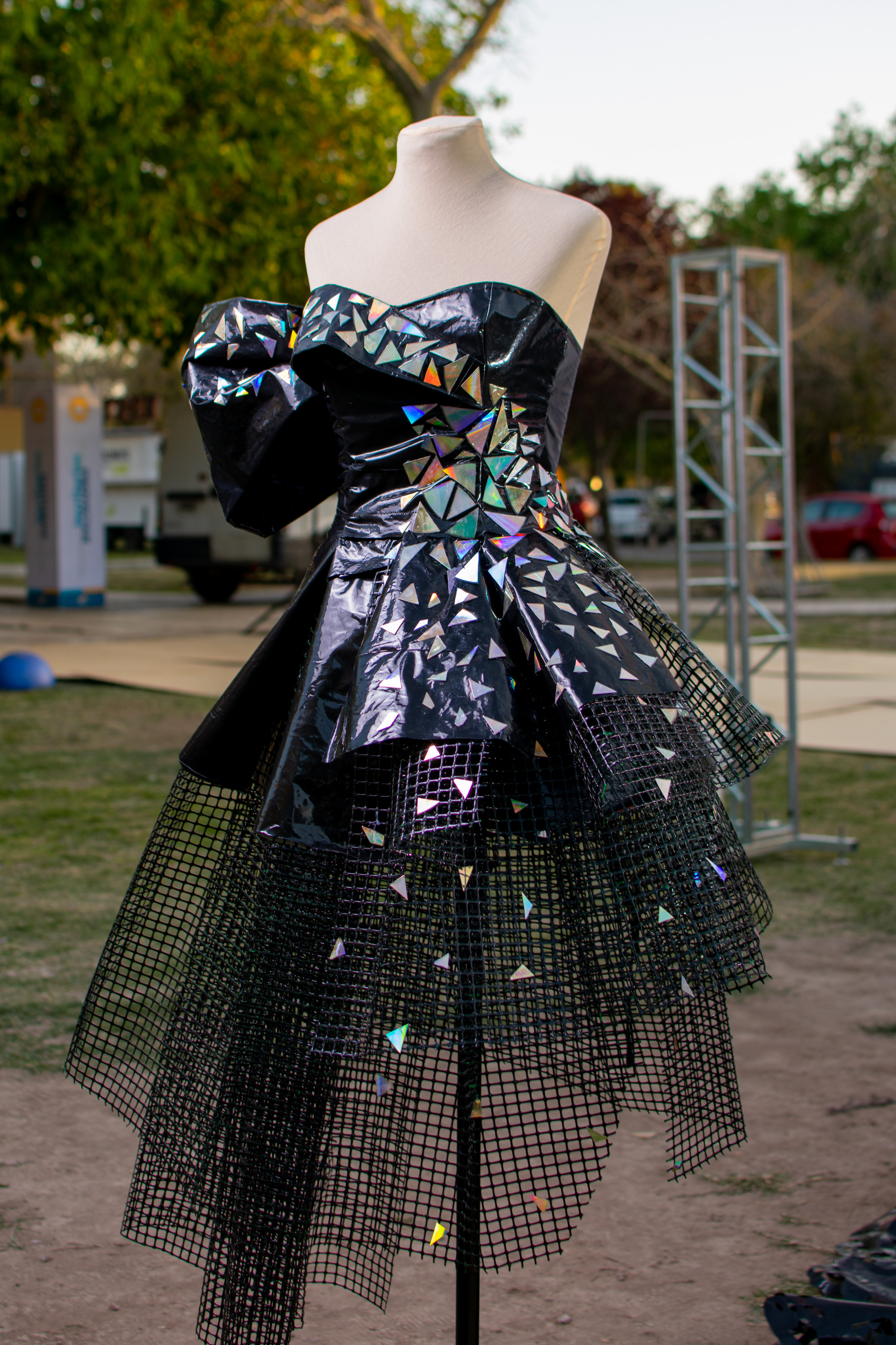 "Daniela Ortega cuenta además, que es la presidenta de la "Asociación Civil Estilo San Juan" junto a Francisco Zito, esta asociación agrupa a todos los diseñadores y artesanos dedicados a la producción y generación de moda de la provincia de San Juan. Esto cuenta con una personería jurídica para poder dar capacitaciones desde nosotros o poder articular con otros profesionales para que vengan a dar sus experiencias. El único objetivo es buscar profesionalizar, tener conocimientos y poder emprender. Junto a mi coequiper Francisco decidimos traer la sustentabilidad a la asociación empezar a trabajar con conciencia y con criterio. Este eje sustentable al desarrollar la diplomatura lo traslade en todos sus tipos, por ejemplo desde armar un molde, desde el desecho textil, la moda circular, etc. Luego apareció la invitación al evento del aniversario de la facultad para participar. Así es como entre los dos, se da origen a una revelación artística, "que si no cuidamos el medio ambiente, si no cuidamos lo que estamos usando nos vamos a vestir con esos desechos". La idea fue presentada a los alumnos que entusiasmados salieron en búsqueda de los materiales, por ejemplo las bolsas de alimento para perros, la malla plástica de construcción, bolsas de residuo, cartones corrugados desechados, latitas de gaseosas o cervezas, entre otros. Hacer la "Colección 2050 fue una transición hermosa, una experiencia super enriquecedora, ya que toda la muestra está hecha con productos reciclados. Un logro de parte de los alumnos ya que venían trabajando con conocimientos e investigaciones todos los elementos visuales de las composiciones, las siluetas, las formas, es decir un proceso de estudio bastante grande que había que volcarlo al diseño. Todo tiene un por qué y está fundamentado en cómo se uso y las formas y siluetas que lograron.
