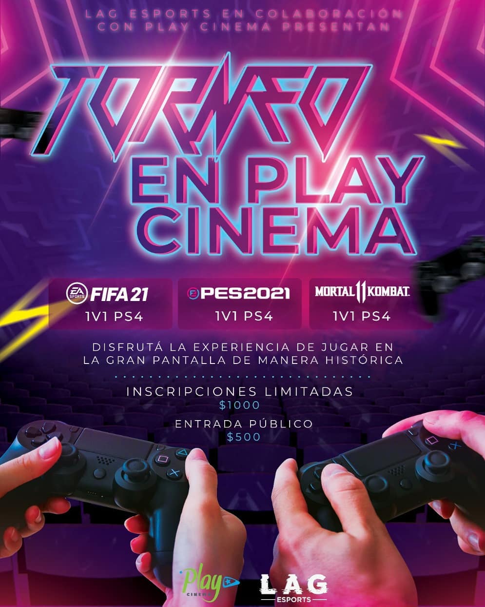 Con cupos limitados, los interesados podrán competir en Efootball Pes 2021, FIFA 2021 y Mortal Kombat 11 Ultimate (todos los juegos en PlayStation 4). La particularidad de este evento es que se desarrollará durante 5 jornadas de 7 horas cada una en el interior del cine, disfrutando de las maravillas y calidad que ofrece la pantalla grande.
