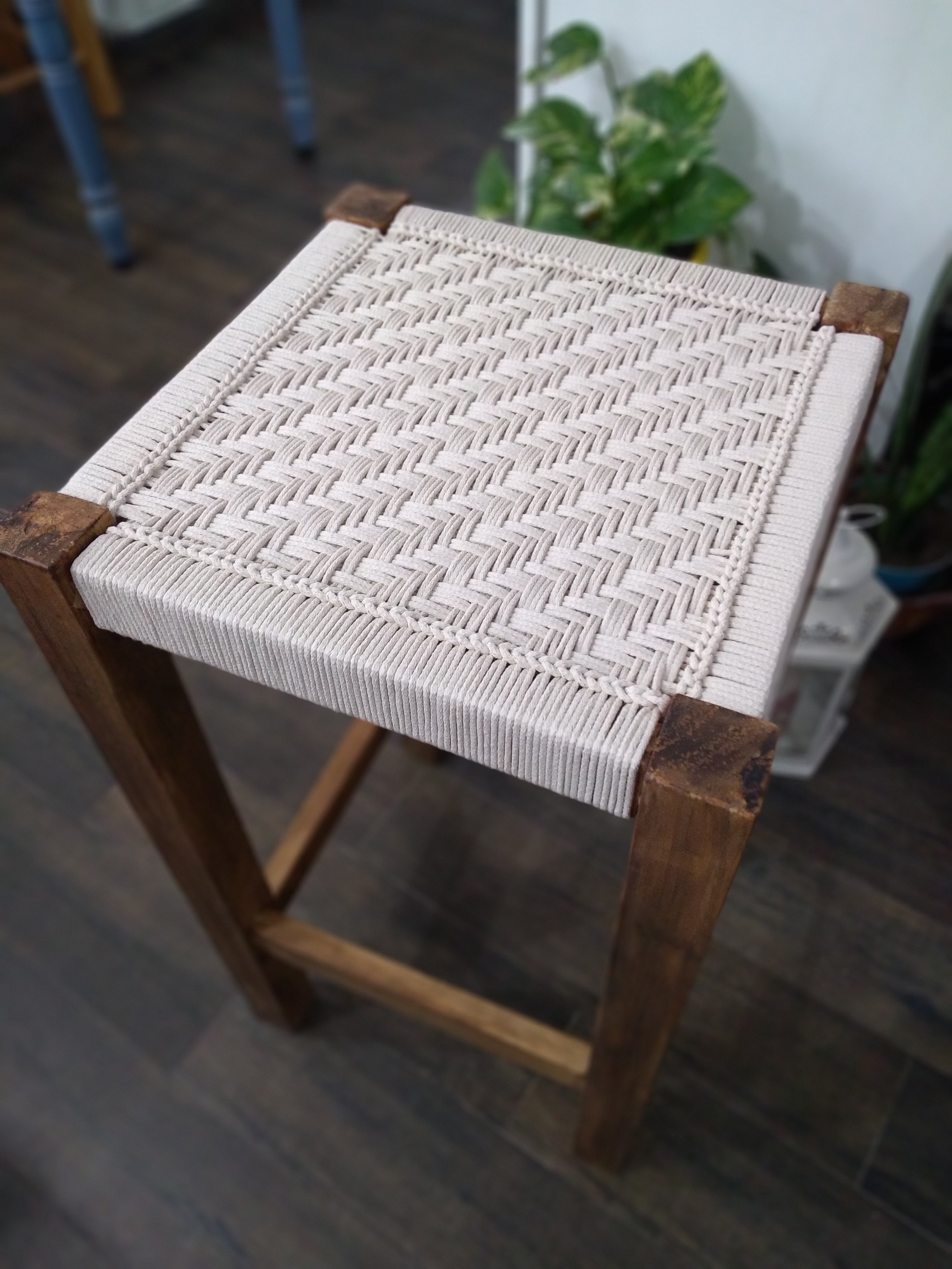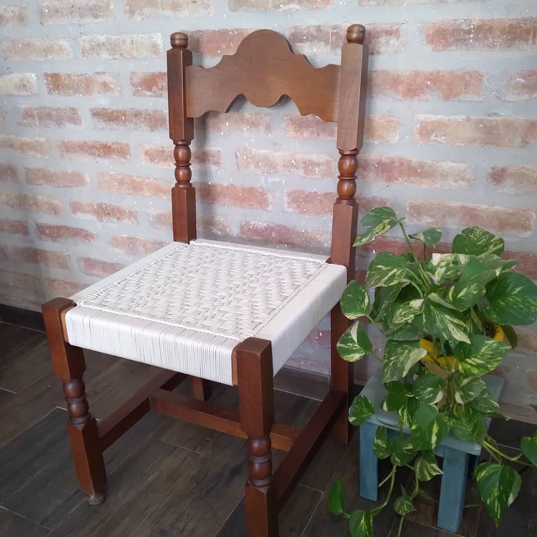 Para realizar encordados se necesita que la estructura sea cuadrada, rectangular o con las esquinas apenas redondeadas. Podés encordar bancos, sillas, sillones, hamacas, mesas, respaldo de camas, etc. Son muchas las cosas que podés hacer y muchos los materiales que podés usar. Trabajo sobre todo con cordón de polipropileno de 4mm, es muy fácil de limpiar y vienen muchos colores. También uso papel kraft, yute y rafia. Tengo estructuras básicas en madera y hierro que voy encordando para tener en stock pero la mayoría de los trabajos son a pedido y restauraciones. ¡Nada se tira! Siempre hay que darle otra oportunidad a esas sillitas viejas.