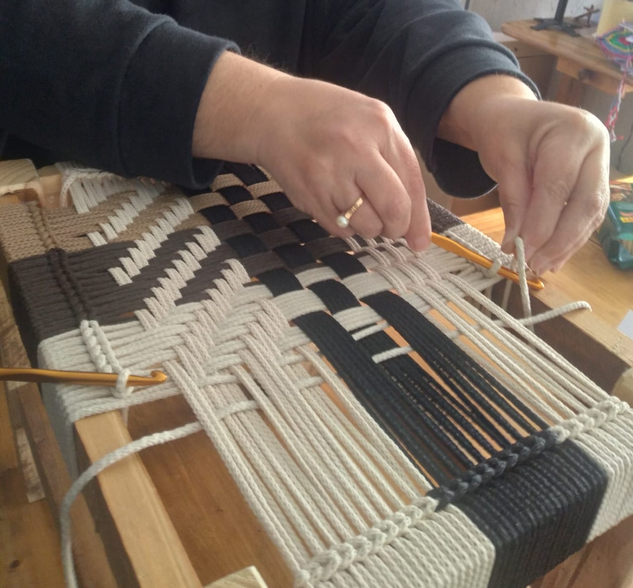 Como muchas historias que se cuentan, en pandemia trabajaba mucho con las artesanías ya que disponía de más tiempo en casa, pero me puse a pensar que otra cosa podía hacer con el tejido. Así comencé a indagar en Instagram y Pinterest, allí encontré muchas cosas encordadas que me encantaron. Y, por supuesto puse manos a la obra, empecé viendo videos y tutoriales hasta que encontré una chica de Buenos Aires que me enseño algunos detalles que me faltaban, obviamente que por internet. Así comencé con los encordados, la técnica de este trabajo me encantó porque se combina el telar con el crochet.