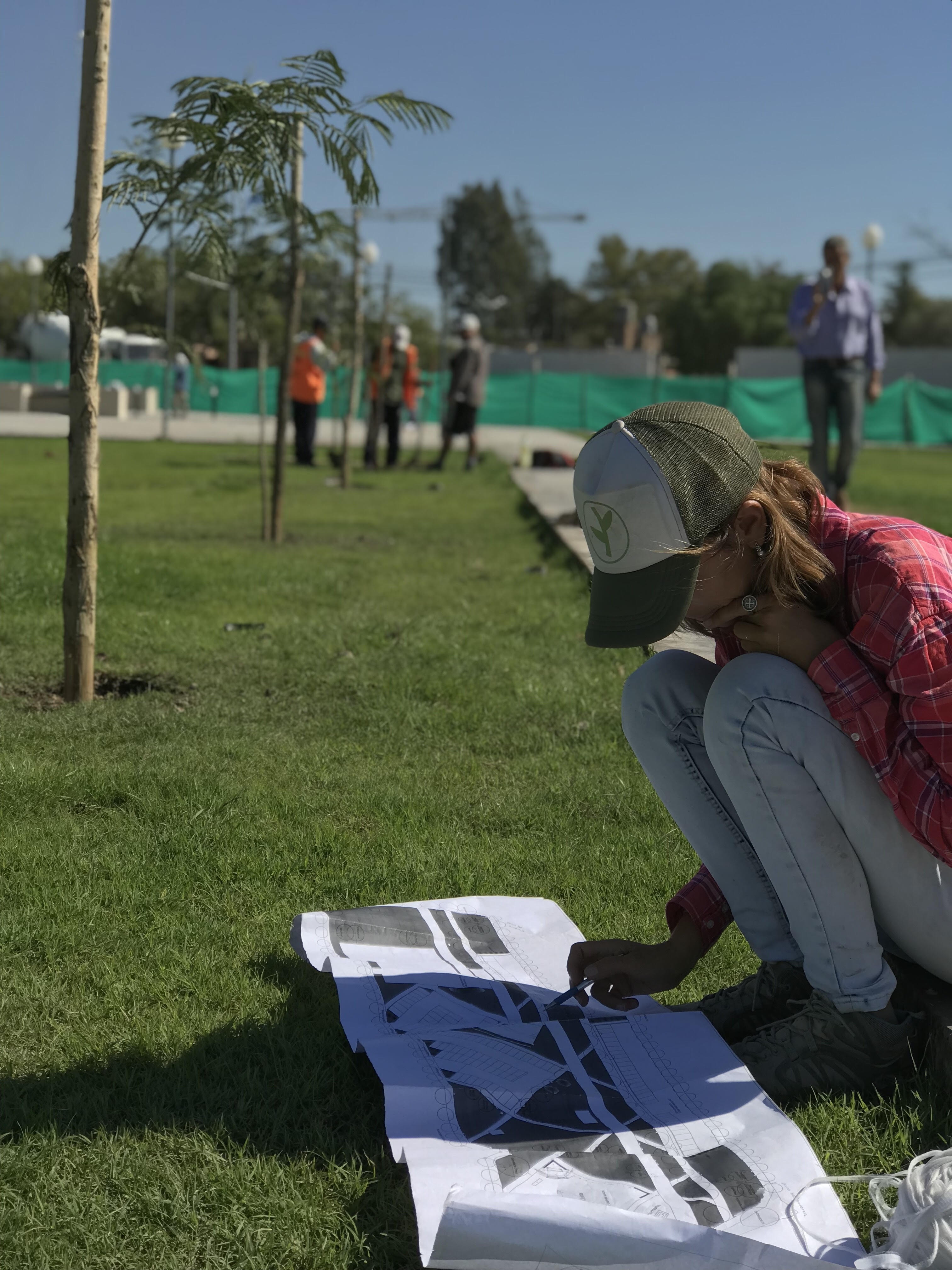“Para esto es fundamental el sistema de riego que fue colocado al comienzo de la obra y permitirán la vida de todas las especies el mantenimiento general. Se han colocado alfombras de césped bermuda (conocida como chepica), y césped de invierno para que en esta etapa luzca bien verde, destaca Alejandra, de la empresa Brote, que ha contado con la mano de obra del personal municipal.