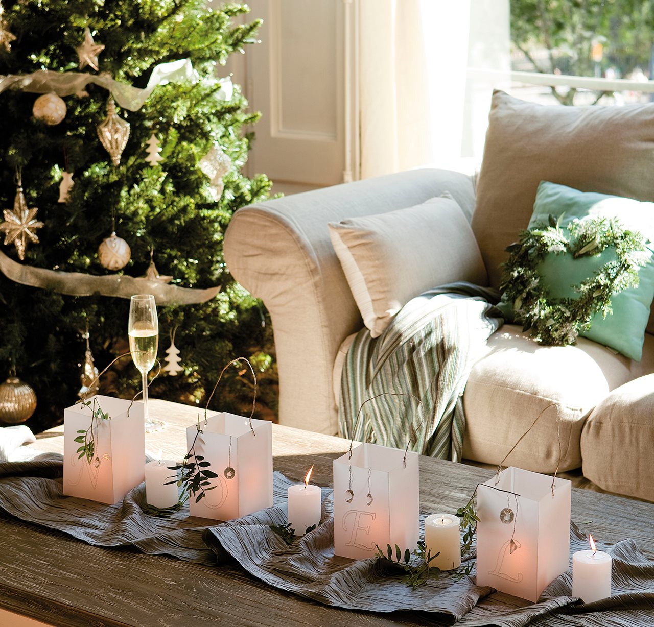 En la mesa ratona o de centro, como así también en las mesitas del costado de un sillón coloca una hilera de velas y farolitos de luz, con esto creas un ambiente cálido y envolvente.