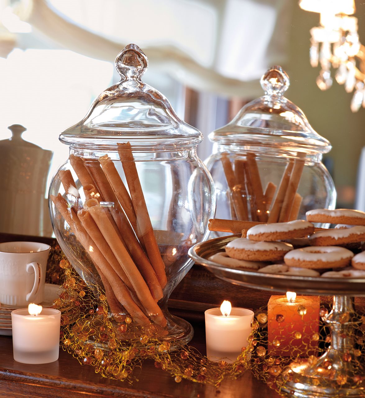 Puedes utilizar frutos secos, barquillos, bastones de chupetín, ramas de canela, etc. En la tartera puede ir el dulce que preparaste, galletas, cupcakes, pequeños pan dulces, entre otros. Prepara un buffet para dulces con tus mejores piezas y decóralo con unas velas. Hay que tener presente que si hay niños se puede armar cosas muy vistosas en dibujos que ellos prefieran.