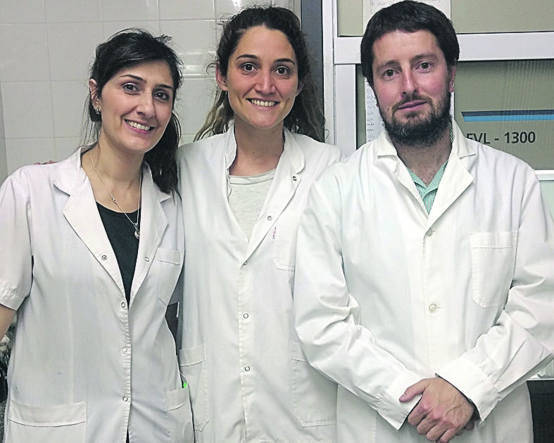 Parte del grupo de investigadores: Dra. Paola Maturano, y los ingenieros agrónomos Victoria Mestre y Federico Kerman.