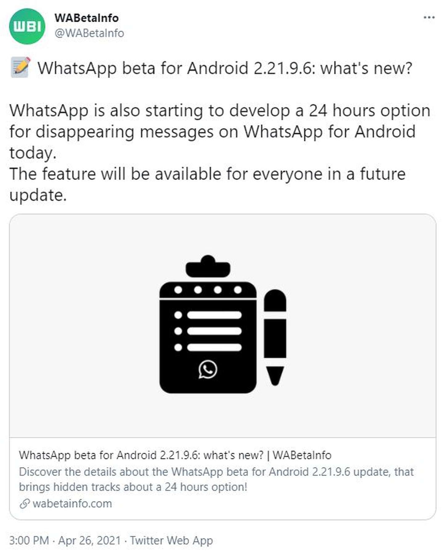 La aplicación de mensajería WhatsApp ampliará las opciones en los mensajes temporales, que permitirá establecer un período de 24 horas para que los nuevos mensajes se eliminen de forma automática.