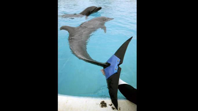 Este delfín perdió su cola al quedar atrapado en una trampa para cangrejos. Luego de un año y medio de trabajo por parte de especialistas pudo estrenar su prótesis.