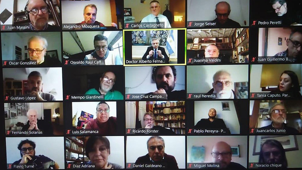 Así lo afirmó el Presidente al participar este viernes de un encuentro virtual organizado por el Consejo de Asesores de la Presidencia, bajo el título "Para pensar el Frente de Todos", que fue coordinado por los dirigentes Ricardo Forster, Eduardo Valdés y Alejandro Mosquera, del que participaron referentes de todos los partidos y movimientos que integran el espacio.