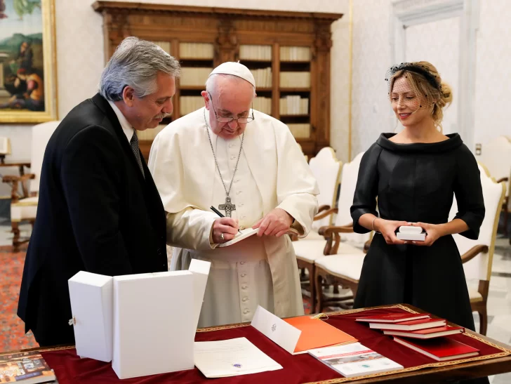El papa Francisco le pidió el viernes al presidente Alberto Fernández que "sean mensajeros de la paz", al entregarle, en el marco del intercambio de regalos tras el encuentro a solas que mantuvieron en el Vaticano durante 44 minutos, una escultura con forma de medallón que simboliza la paz.