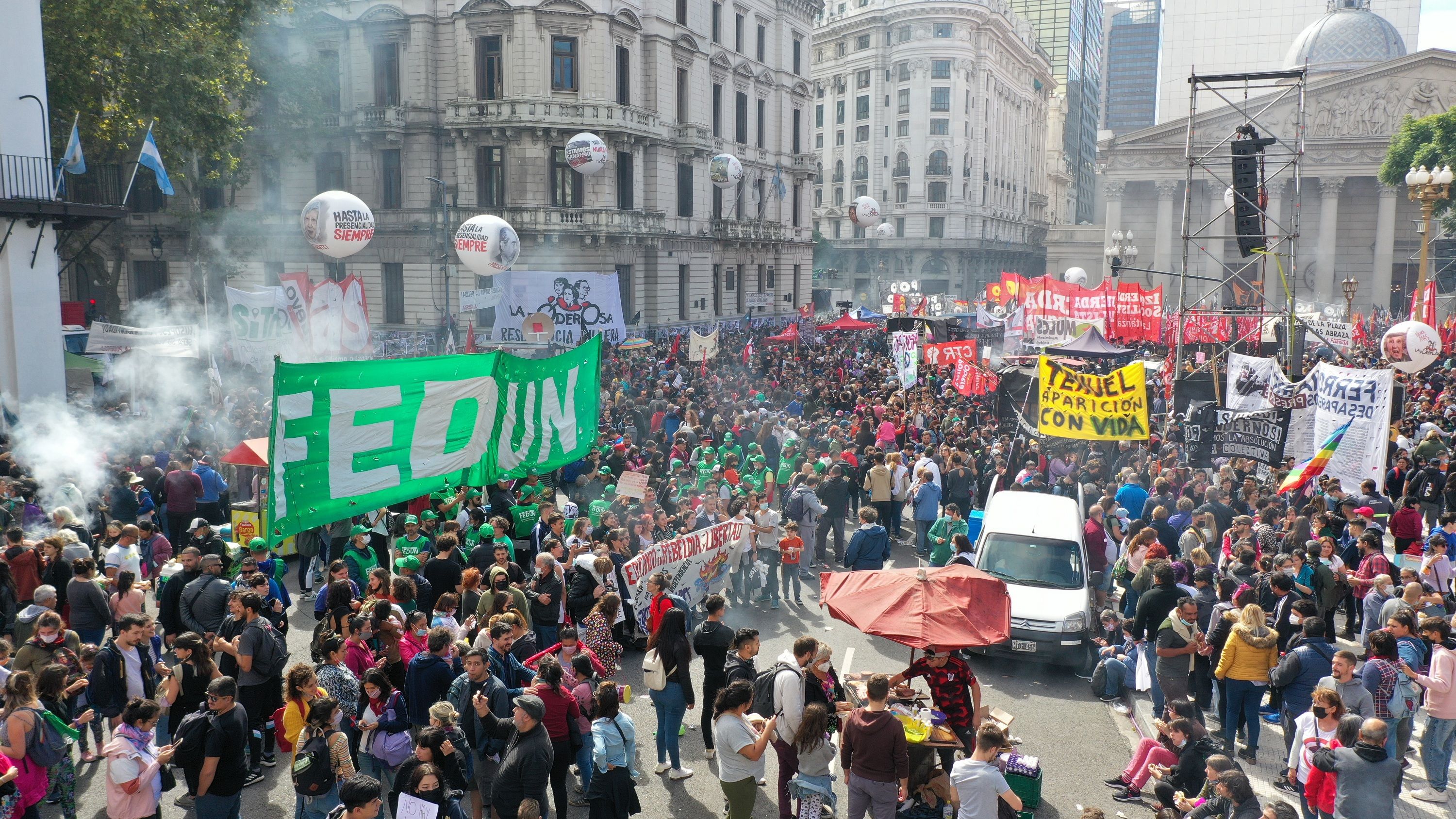A pesar de lluvia y viento de este miércoles en algunas localidades del país, una multitud se congregó en distintas movilizaciones.