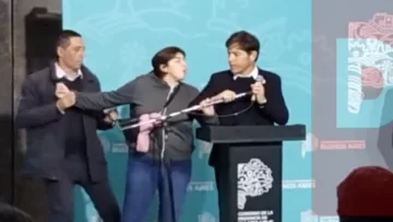 Axel Kicillof se quedó quieto durante todo el episodio. Y cuando logró volver a tener el control del micrófono en sus manos, le dijo a su seguridad: “Dejenla, dejenla”.