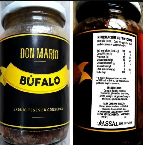 – “Búfalo – Exquisiteces en conserva – marca Don Mario, RNE 21- 114810”,