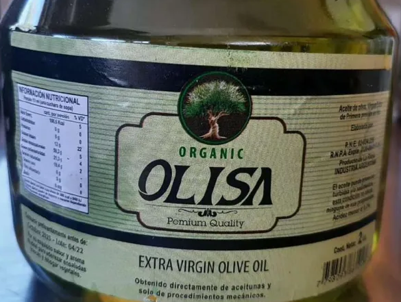 Luego de una investigación la ANMAT dispuso: "Prohíbese la elaboración, fraccionamiento y comercialización en todo el territorio nacional y en plataformas de venta en línea del producto Organic Olisa Premium Quality – Extra Virgin Olive Oil – Aceite de oliva, Virgen Extra de Primera presión en frío – Elaborado por RNE 02-034255, RNPA Expte 4120-004917-21 – Producto de La Rioja – Industria Argentina, en cualquier presentación, lote y fecha de vencimiento, por carecer de registros sanitarios y por estar falsamente rotulado al exhibir en el rótulo un número de RNE perteneciente a otro elaborador y un RNPA inexistente, resultando ser un producto ilegal".