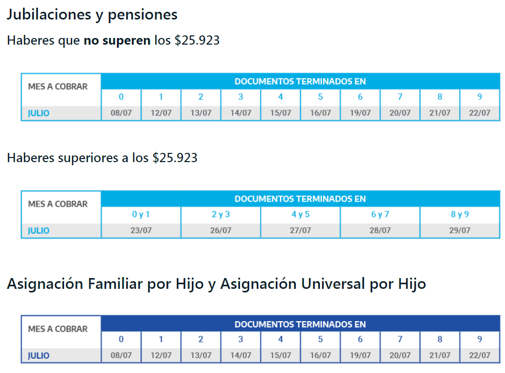 ANSES: día de pago en julio a jubilados, AUH, AUE, PNC, Desempleo y otras asignaciones