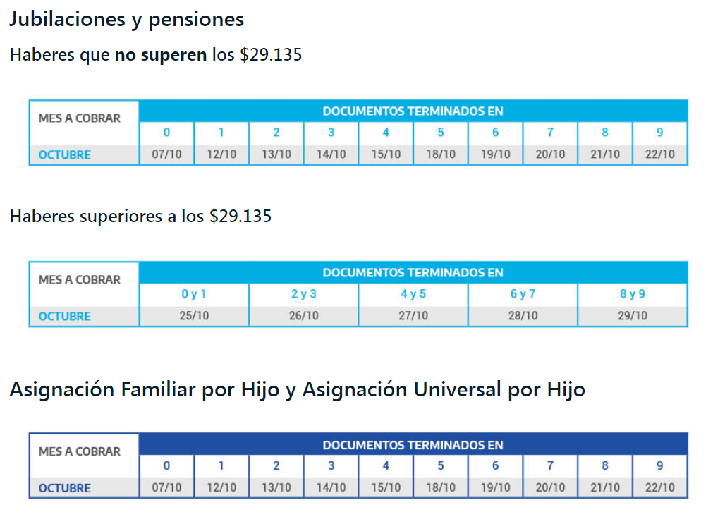 ANSES: día de pago en octubre a jubilados, AUH, AUE, PNC y otras asignaciones
