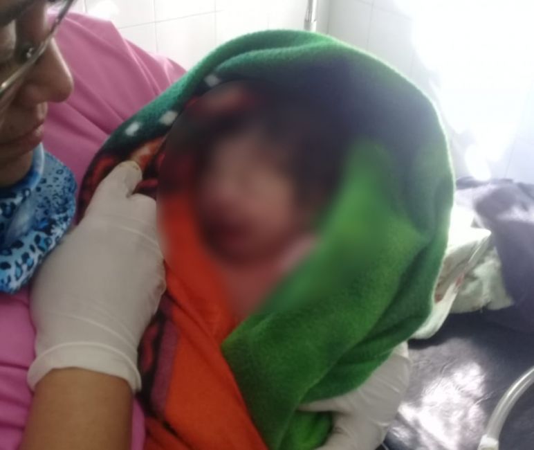 Al acercarse a la fuente del extraño sonido, se dio con que se trataba de un pequeño bebé, cubierto en sangre, sin otra cosa que una toalla ensangrentada debajo de su cuerpo, que en algún momento lo envolvió.