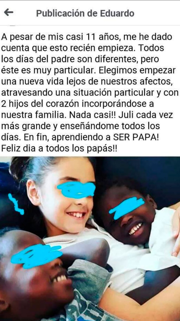 La apariencia que daba la familia no indicaba problemas con los niños. En eso coinciden todas las fuentes consultadas. Antes de borrar su perfil de las redes sociales, Rucci posteó para el Día del Padre, en junio pasado, una foto de su hija biológica con sus hermanitos adoptivos abrazos y entre risas.