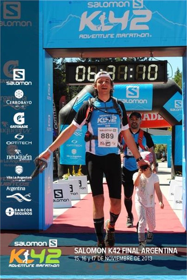 Eduardo Rucci junto a su hija biológica, tras una carrera de Triatlón en la Patagonia.