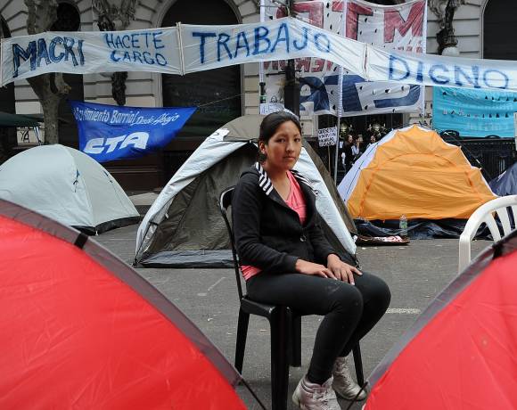 Segovia, uno de los referentes del acampe, señaló que ‘este ministerio tiene un presupuesto de 1.800 millones de pesos, por lo que creemos que está en condiciones de plantear una política seria de empleo‘.