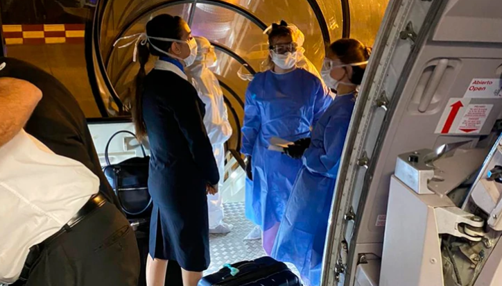 Fuentes del aeropuerto consultadas por Infobae precisaron que “el vuelo fue llevado a una posición remota e intervino sanidad de frontera porque supuestamente tres tripulantes con fiebre pero al final no pasó nada, al rato liberaron a todos”.