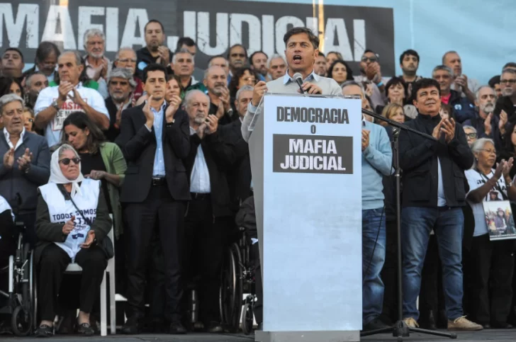 Militantes realizaron ayer una marcha hacia el Palacio de Tribunales (ciudad de Buenos Aires) bajo el lema "democracia o mafia judicial" y en rechazo a la "proscripción" de Cristina. La convocatoria tuvo lugar en la Plaza Lavalle, frente al Palacio de Justicia, sede de la Corte Suprema. El escenario estuvo en Libertad y Tucumán, frente al edificio del Teatro Colón. Los oradores fueron el gobernador bonaerense, Axel Kicillof; y los diputados por el Frente de Todos Hugo Yasky y Vanesa Silley. También estuvieron en el escenario el ministro del Interior, Eduardo de Pedro; y el ministro de Desarrollo Bonaerense, Andrés Larroque. La manifestación fue convocada por La Cámpora.