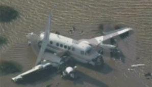 Poco después de las 15, un helicóptero de la Prefectura argentina dio con el lugar del siniestro, unos 10 kilómetros al sudoeste de Carmelo. Las imágenes mostraban que el bimotor había logrado de alguna manera amerizar en una zona baja. Los mayores daños se observaban en la trompa, la cola y los extremos de las alas.