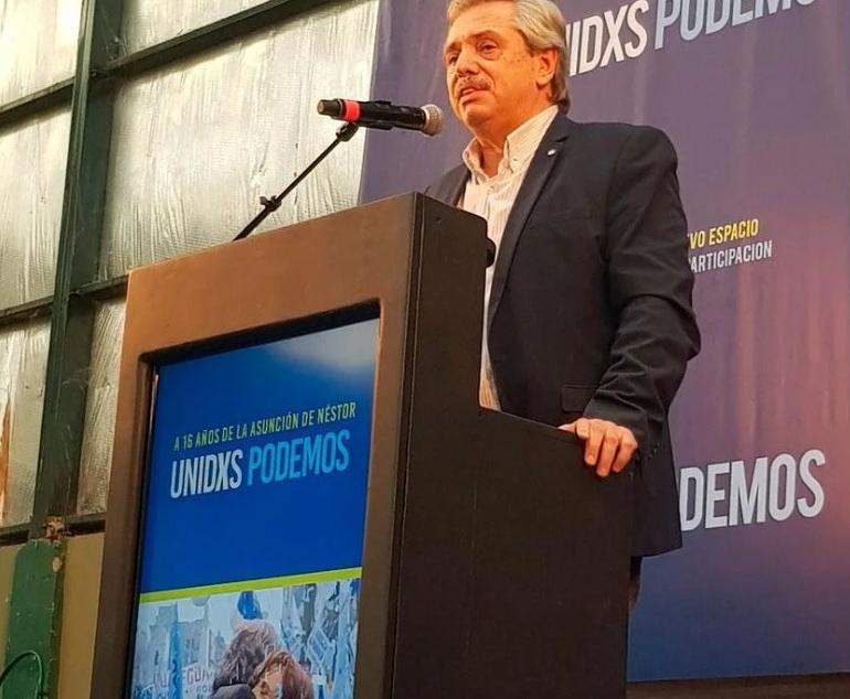 Después de reproducir casi 50 videos de distintos dirigentes que apoyan la candidatura de Fernández, el precandidato tuvo su lugar en el micrófono y arengó el "vamos a volver" con muchos elogios a Néstor Kirchner.