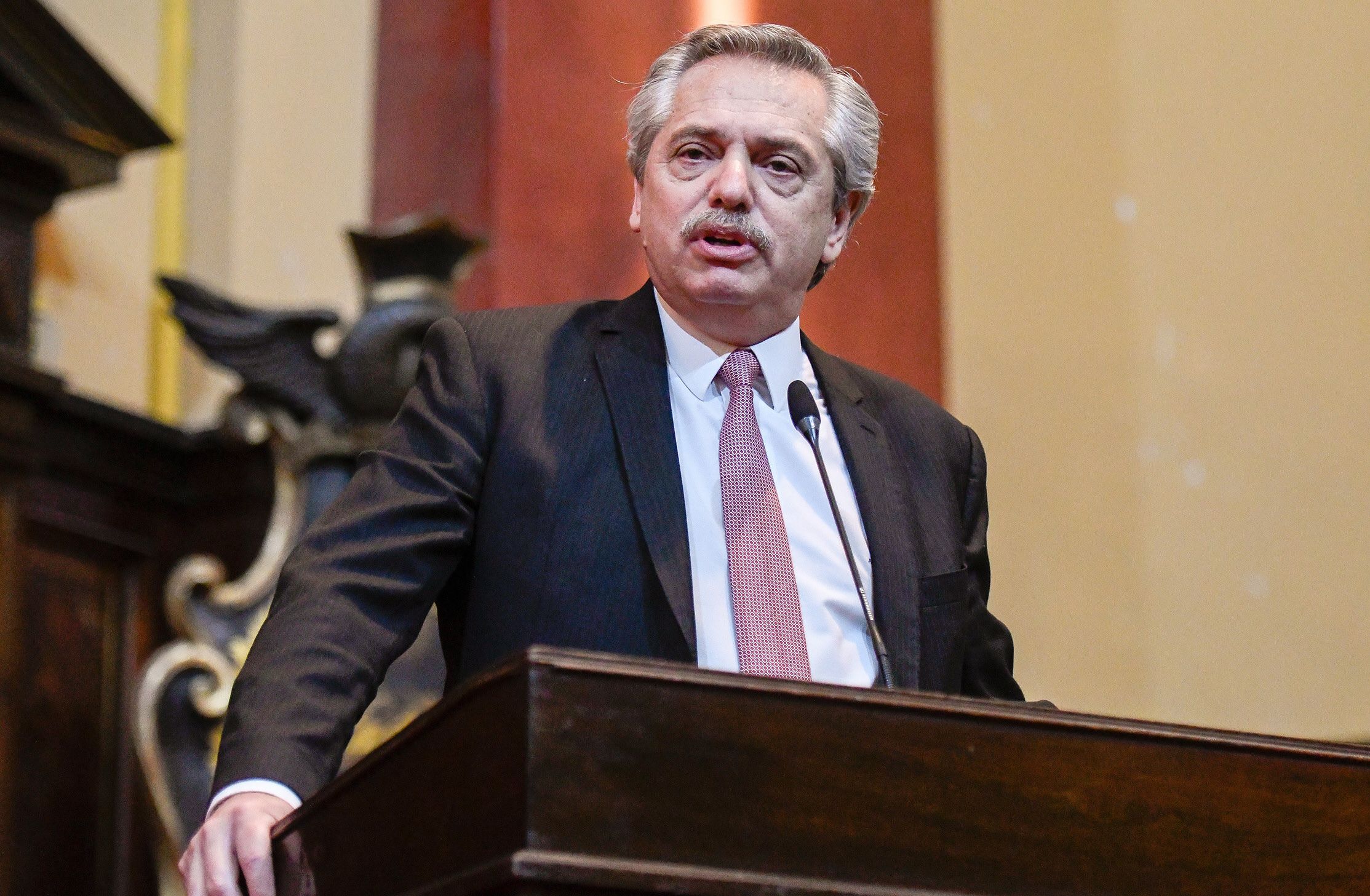 "Negocio". Alberto Fernández, que asistió al homenaje al fallecido exprocurador Esteban Righi, dijo que "con Macri cada necesidad es un negocio".