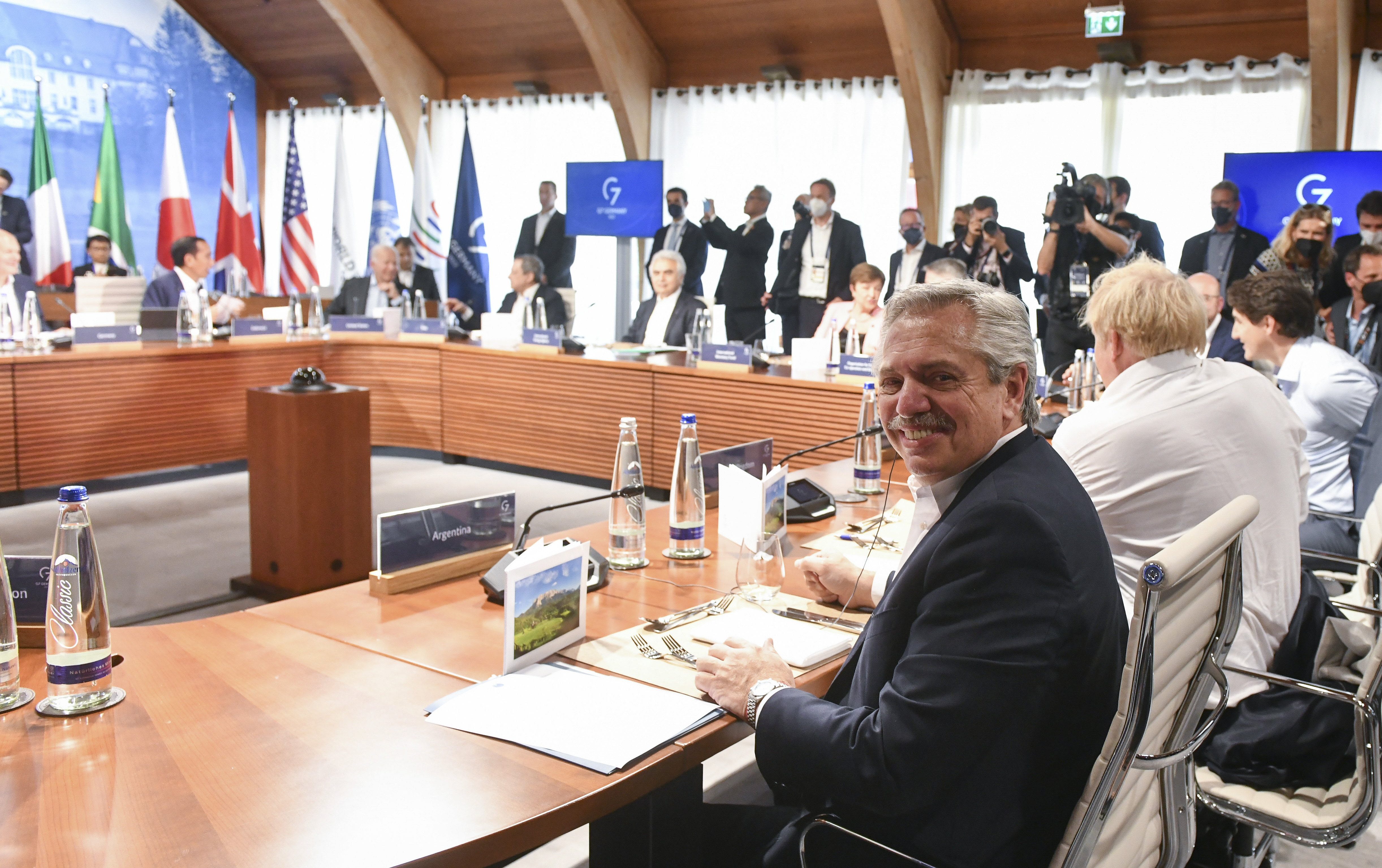 En su discurso en la Cumbre del G7, Alberto Fernández condenó la invasión rusa en Ucrania y le recordó a los presentes que hace exactamente 75 años, el 27 de junio de 1947, ‘se inició la conferencia de París que abrió el camino al Plan Marshall que ayudó a Europa a recuperarse tras la Segunda Guerra Mundial’ y destacó que América Latina nunca contó con un mecanismo de ayuda de esa envergadura. ‘En América Latina no soñamos con un nuevo Plan Marshall. Pero soñamos con un nuevo orden internacional donde los esfuerzos se equilibren y las ventajas se distribuyan con criterios de equidad. Soñamos con no ser discriminados por el mundo central y condenados a la marginalidad’, apuntó. Para poder hacer frente a los desafíos actuales -incluyó problemáticas ambientales, sanitarias, energéticas y financieras- Alberto abogó ‘por la construcción de una nueva arquitectura financiera internacional que incluya a las periferias del mundo’.