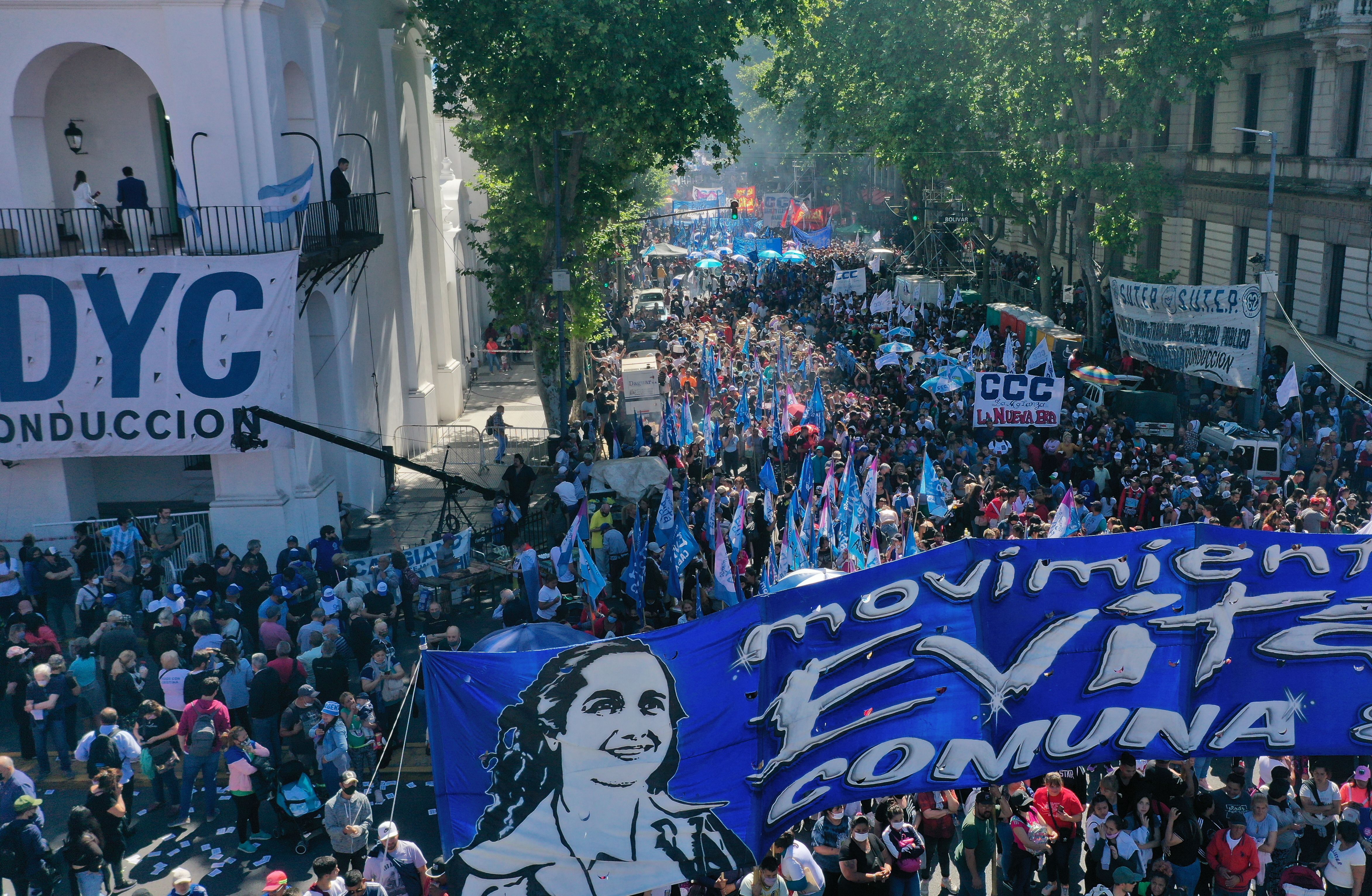 Con carteles con las imágenes de Perón, Evita, Néstor Kirchner y la vicepresidenta Cristina Fernández, además de insignias como "Fuerza Alberto", las distintas organizaciones del peronismo se movilizaron a Plaza de Mayo.