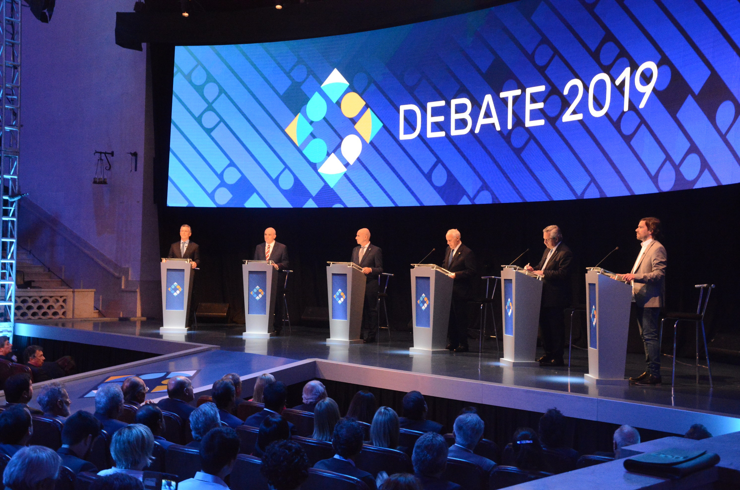Macri (Juntos por el Cambio); Fernández (Frente de Todos); Roberto Lavagna (Consenso Federal); Nicolás del Caño (Frente de Izquierda), José Luis Espert (Unite por la Libertad y la Dignidad) y Juan José Gómez Centurión (Frente Nos) se sometieron al escrutinio del pueblo en el Paraninfo de la Universidad Nacional del Litoral. Por el sorteo previo, Macri abrió el debate agradeciendo el esfuerzo hecho por los argentinos especialmente en la última etapa y planteando que "gracias al esfuerzo de todos se resolvieron problemas que vienen de décadas", pero que aún falta. Allí prometió seguir por el camino de la verdad, la decencia, el diálogo y el respeto. E inmediatamente convocó a todos para conversar sobre qué país queremos construir para garantizar el futuro. Pero la respuesta llegó inmediatamente después por parte de Alberto Fernández que no dudó en llamar varias veces "mentiroso", a Macri.