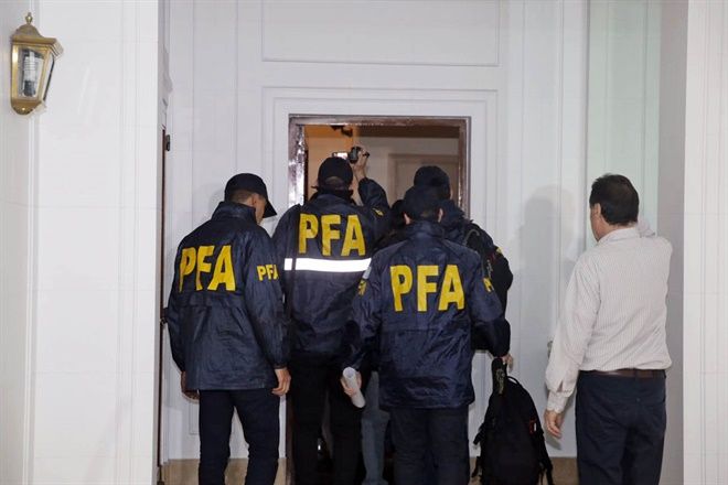 Agentes de la Policía Federal ingresaron esta tarde al edificio de la calle Juncal al 1300, en Recoleta, habitual residencia de Cristina Kirchner. El operativo fue ordenado por el juez Claudio Bonadio en el marco de la causa conocida los "cuadernos de las coimas".