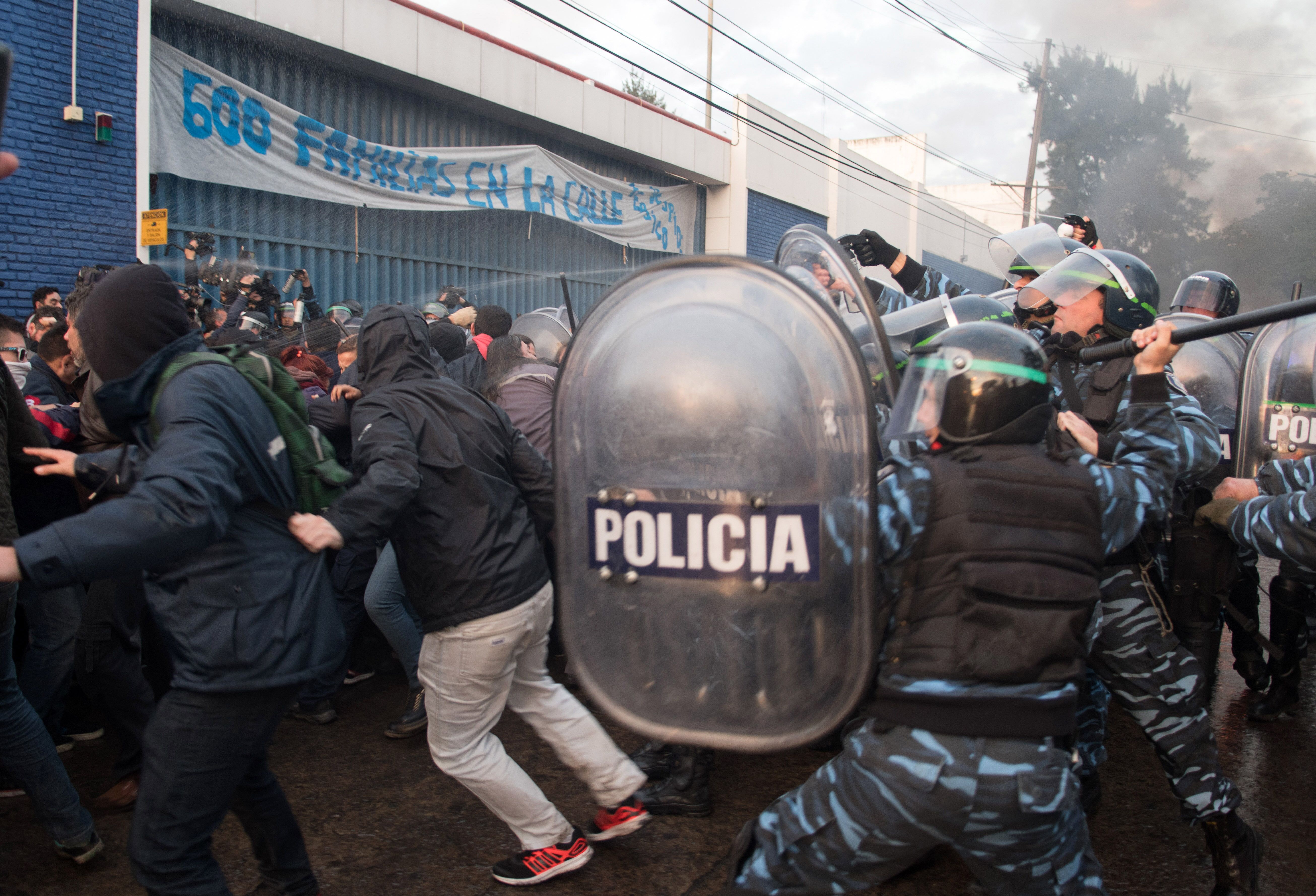 El desalojo comenzó poco después de las 8, cuando unos 500 uniformados de la Policía Bonaerense y Gendarmería avanzaron con escudos, gases lacrimógenos y balas de goma sobre los manifestantes que rodeaban la puerta de la fábrica. Duró más de dos horas.