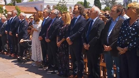 Macri y Fernández llegaron minutos antes de las 11, están acompañados por sus respectivas esposas, Juliana Awada y Fabiola Yañez, y se ubicaron en primera fila. Del lado del Presidente están entre otros su vice Gabriela Michetti; la gobernadora de Buenos Aires María Eugenia Vidal y jefe de Gobierno porteño Horacio Rodríguez Larreta, y su gabinete.