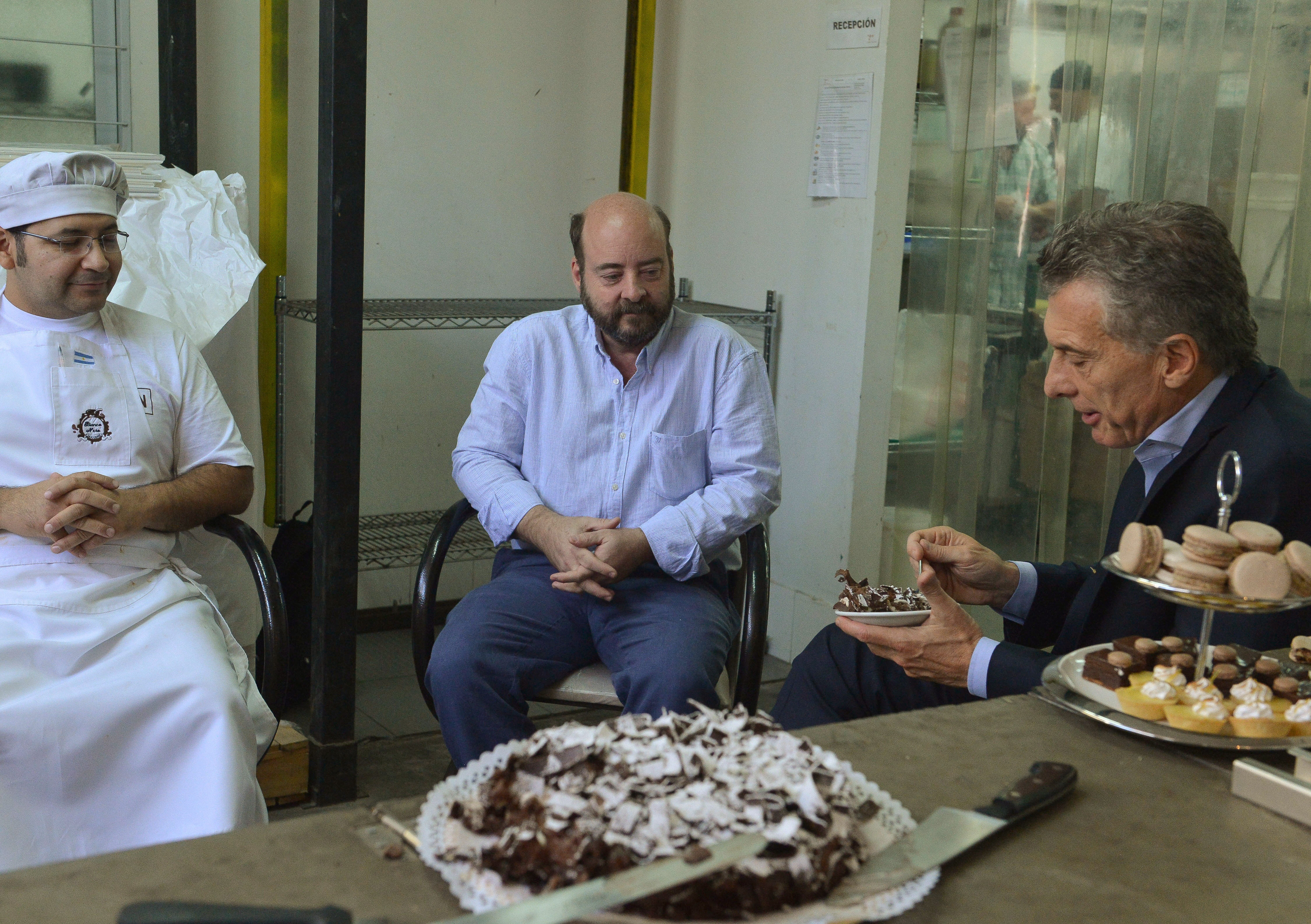 Según informó Presidencia de la Nación en un comunicado, el presidente Mauricio Macri estuvo con Roberto Agüero, dueño de un comercio dedicado a la venta de chocolates, helados, pastelería y panificado.