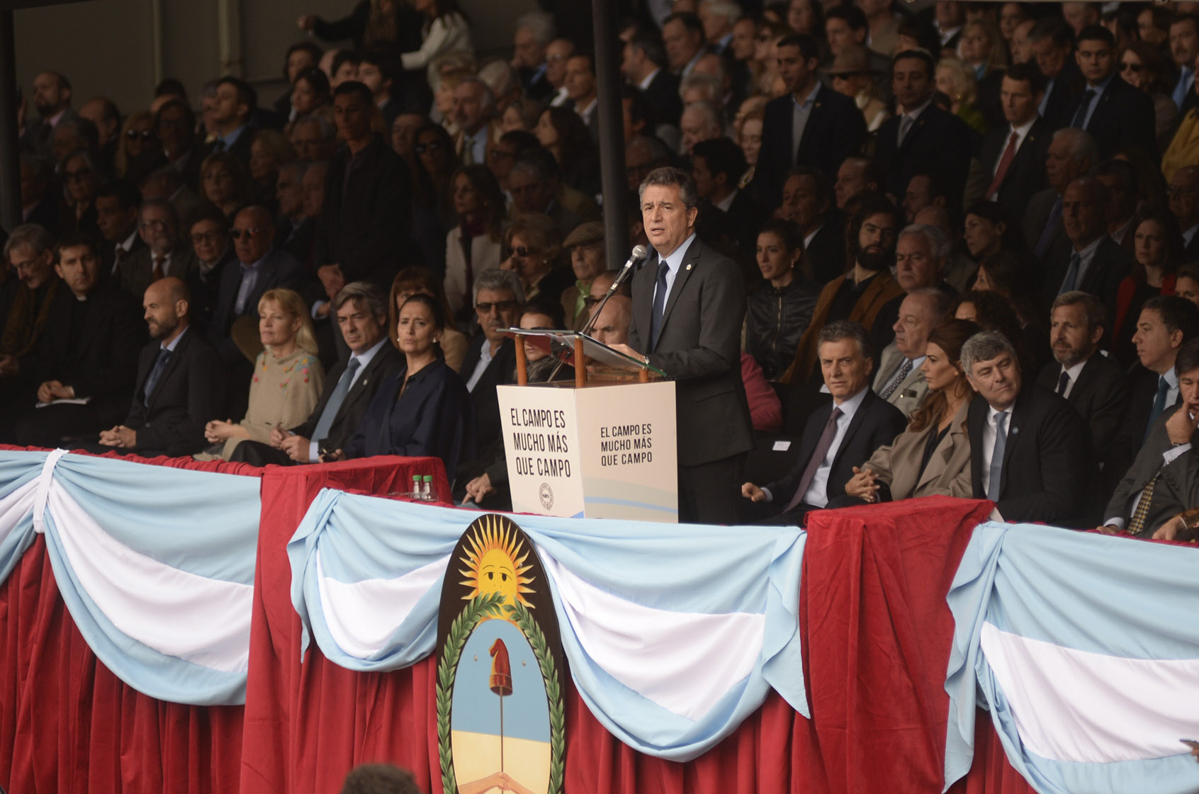 El acto comenzó apenas unos minutos después de las 11, la hora programada para la inauguración de la exposición rural, con el palco oficial y las tribunas repletas, que se unieron con el canto del Himno Nacional y de la Marcha de San Lorenzo. Aunque los flashes apuntaban todos a Macri, el discurso más fuerte de la jornada salió de la boca del presidente de la Sociedad Rural Argentina, quien apuntó duro contra el kirchnerismo y hasta lanzó, para la algarabía de la platea, un ‘no podemos volver al pasado‘.